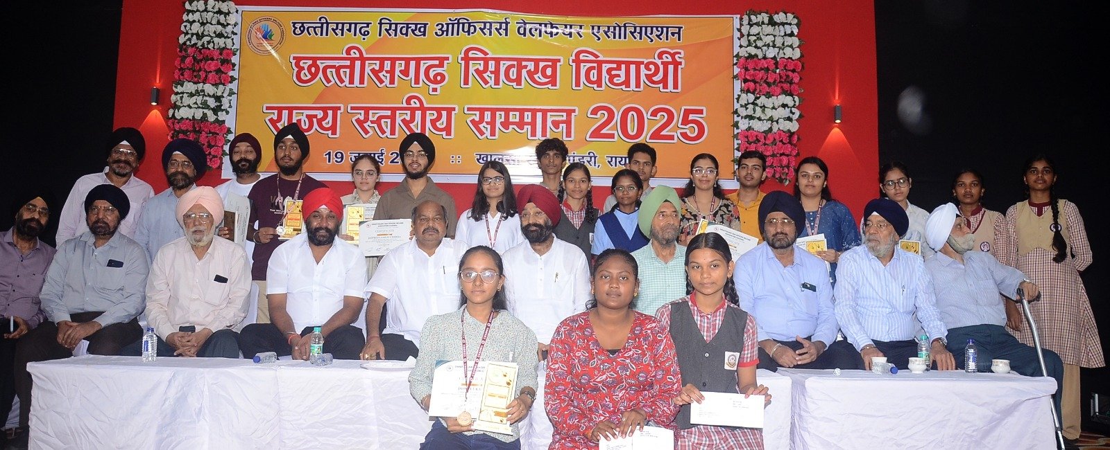 छत्तीसगढ सिक्ख ऑफिसर्स वेलफेयर एसोसियेशन व्दारा आयोजित छत्तीसगढ़ के सिक्ख विद्यार्थी राज्य स्तरीय सम्मान 2025 में 10वीं कक्षा में रायगढ़ के मनजोत सिंह घई,कवर्धा के दर्श सिंह पाहूजा, डोंगरगढ़ की सिमरत कौर छाबड़ा, राजनांदगांव के मेहर सलूजा, डोंगरगढ़ अभिजोत सिंह भाटिया, रायगढ़ की गुरमहक कौर घई, पत्थलगांव जशपुर की रिजक कौर भाटिया, रायपुर के हरलीन सिंह गुरदत्ता, रायपुर की अनमोल कौर को सर्टिफिकेट ऑफ एक्सीलेंस और स्मृति चिन्ह दे कर सम्मानित किया गया। इसी प्रकार 12 वीं कक्षा में बेमेतरा की सिदक कौर सलूजा, रायपुर के जसप्रीत सिंह चावला, भिलाई की बलजिन्दर कौर, बिलासपुर की प्रीत बग्गा और रायपुर की अमृत कौर को सर्टिफिकेट ऑफ एक्सीलेंस और स्मृति चिन्ह दे कर सम्मानित किया गया। इस अवसर पर खालसा स्कूल और माता सुन्दरी स्कूल के मेधावी विद्यार्थियों को भी पुरस्कृत किया गया।