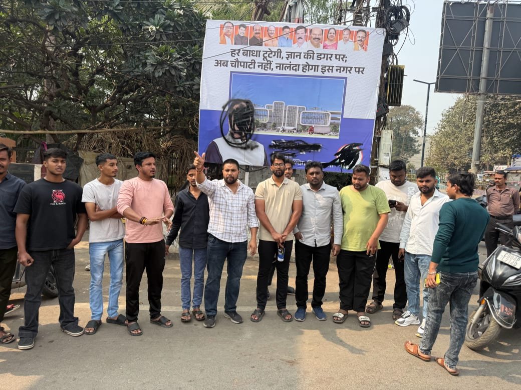 *होर्डिंग पर कालिख पोत आंदोलन — छात्रों-युवाओं का रोजगार व सुविधाएं छीने जाने के विरोध में किया प्रदर्शन*