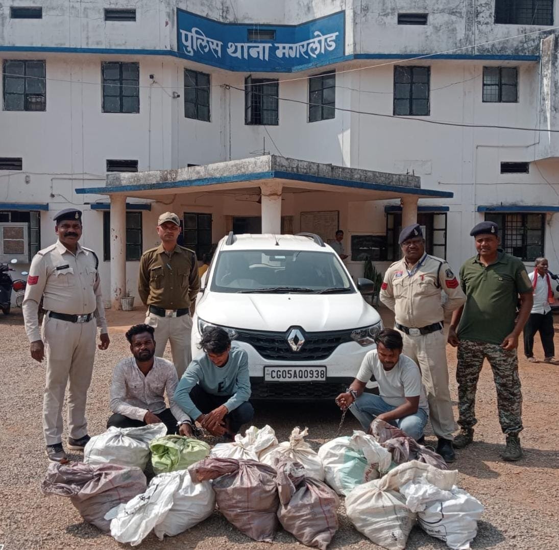 धमतरी पुलिस ने मगरलोड में मुखबिर सूचना पर घेराबंदी कर 706 पौवा देशी शराब और रिनाल्ट ट्रायबर कार जब्त की। तीन आरोपियों को गिरफ्तार कर जेल भेजा गया।