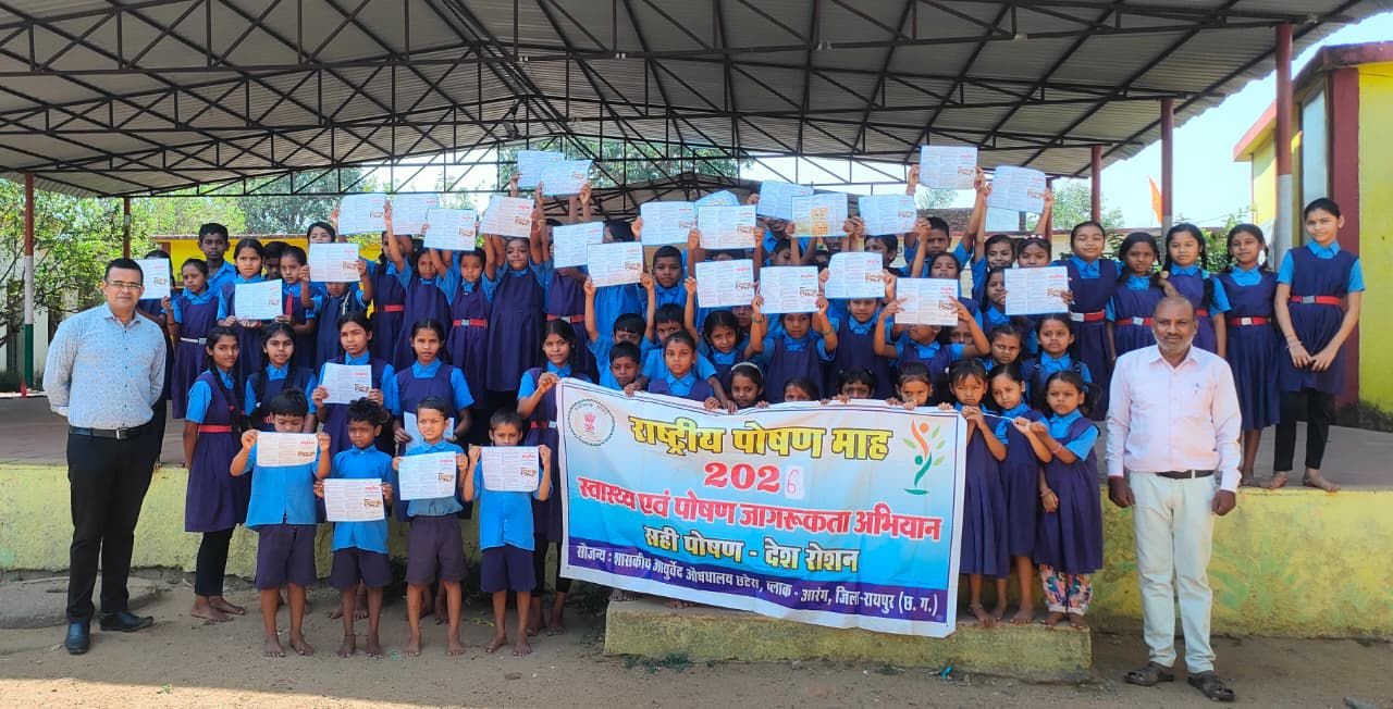 विवरण: आयुष मंत्रालय भारत सरकार एवं संचालनालय (आयुष), छत्तीसगढ़ के निर्देशानुसार तथा कलेक्टर डॉ. गौरव सिंह के मार्गदर्शन एवं जिला आयुष अधिकारी डॉ. स्वाति रावत के नेतृत्व में रायपुर जिले में 9 अप्रैल से 23 अप्रैल तक “पोषण पखवाड़ा” का आयोजन किया जा रहा है। यह कार्यक्रम महिला एवं बाल विकास विभाग के समन्वय से संचालित किया जा रहा है।