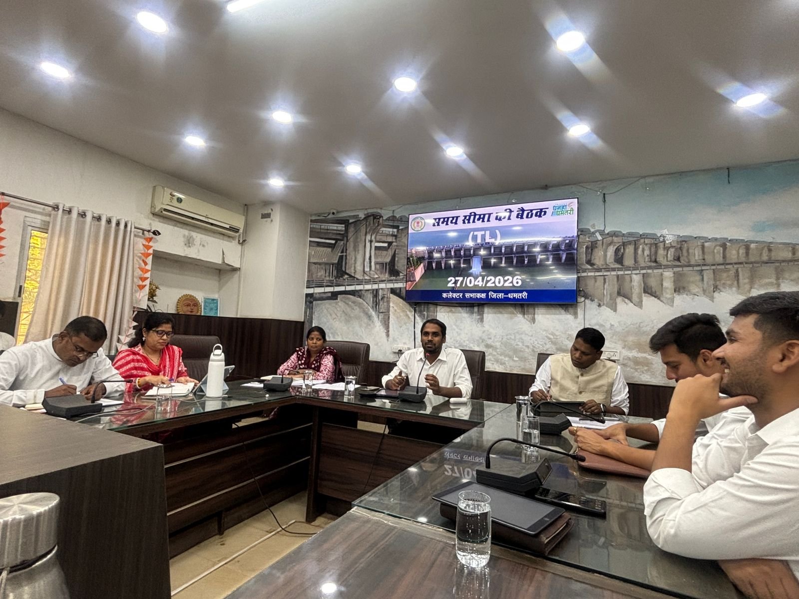 विवरण: धमतरी कलेक्टर अबिनाश मिश्रा ने कलेक्ट्रेट सभाकक्ष में समय-सीमा बैठक आयोजित कर “युवा फेस्ट 2026” की सफलता पर सभी अधिकारियों को बधाई दी। उन्होंने सीमित संसाधनों में टीमवर्क से जिले की सकारात्मक छवि मजबूत करने पर सराहना की और भविष्य में भी सक्रियता की अपेक्षा जताई। विभिन्न विभागों की योजनाओं की बिंदुवार समीक्षा के दौरान पारदर्शी क्रियान्वयन और समयबद्ध मॉनिटरिंग पर जोर दिया।