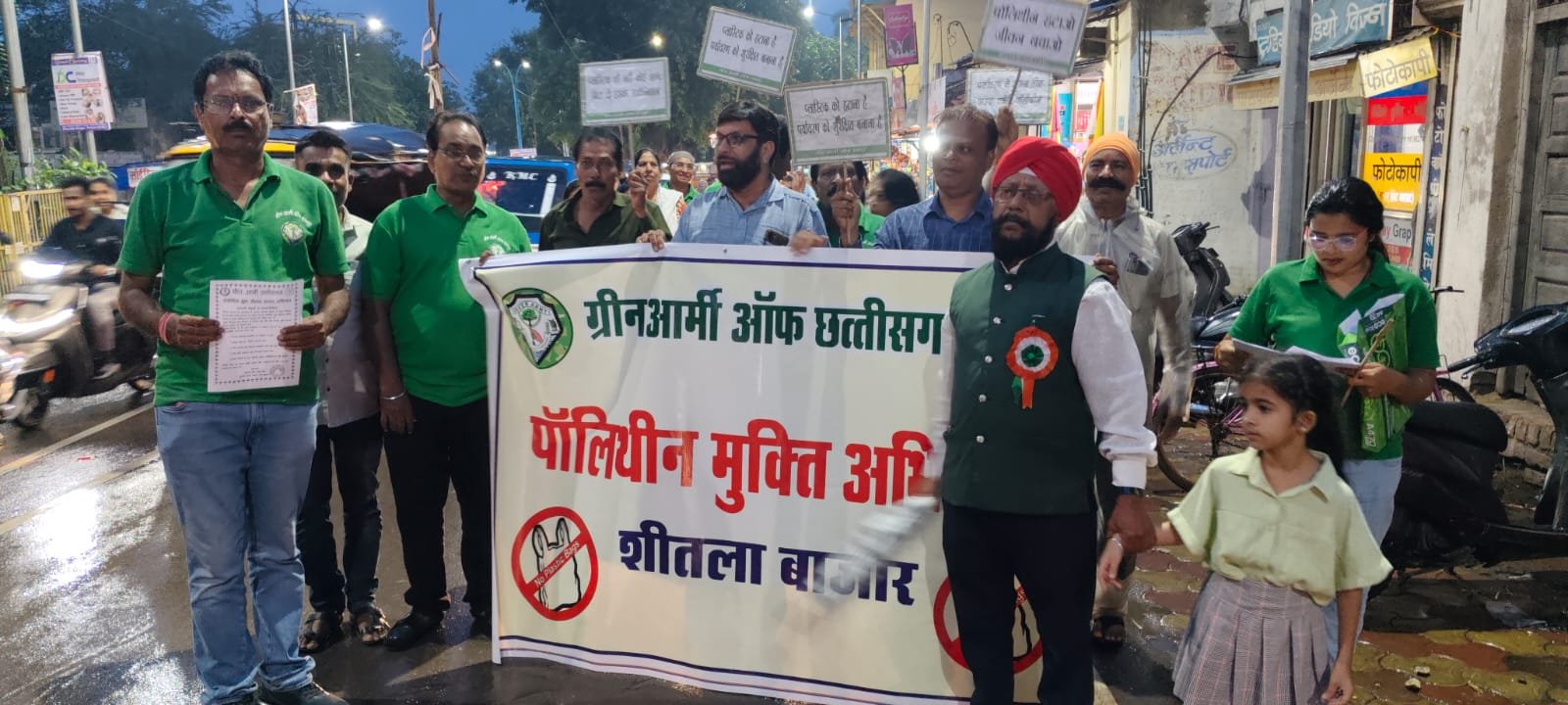 अमृत टुडे । पर्यावरण संरक्षण के प्रति अपनी प्रतिबद्धता दोहराते हुए, ग्रीन आर्मी छत्तीसगढ़ ने आज शीतला बाजार, पुरानी बस्ती में एक व्यापक जन जागरूकता रैली का आयोजन किया। यह रैली बूढ़ा गार्डन गेट से शुरू होकर, बुद्धेश्वर मंदिर और पूरे बाजार से होते हुए, महामाया मंदिर से वापस बूढ़ा गार्डन गेट पर समाप्त हुई, जिसका उद्देश्य क्षेत्र को पॉलीथिन मुक्त बनाने के लिए स्थानीय समुदाय को प्रेरित करना था।